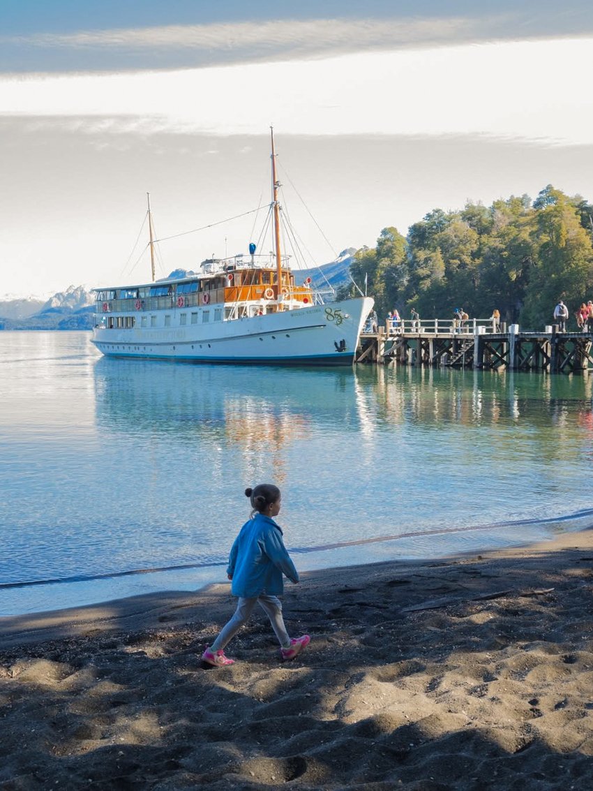 Después, la navegación continúa hacia Puerto Anchorena en Isla Victoria, donde vas a poder recorrer caminos llenos de flora autóctona y llegar a la Playa del Toro, famosa por sus pinturas rupestres milenarias y su arena volcánica inconfundible.